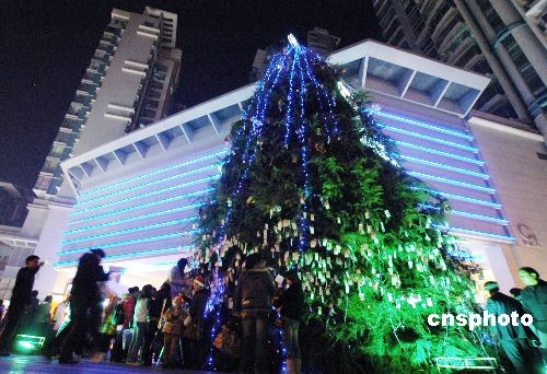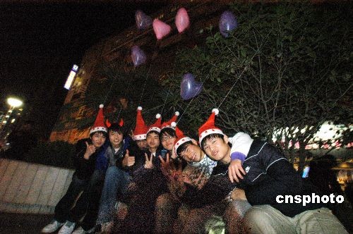 2008年12月24日晚,安徽合肥市不少市民走出家门,在街头欢乐度过平安夜。中新社发 庄道龙 摄