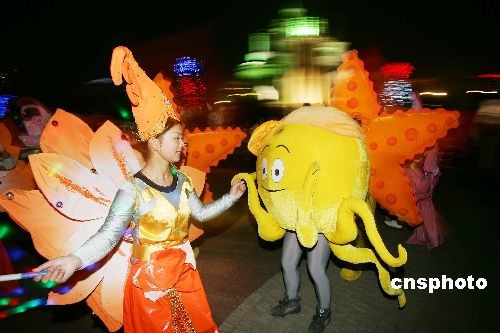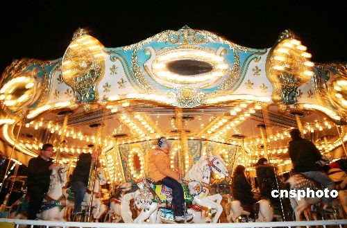 12月24日晚,是西方传统节日圣诞节的平安夜,在山东潍坊市区富华游乐园内,熊熊的篝火、欢快音乐、色彩艳丽的花车使人完全沉浸在了节日欢乐的海洋之中。中新社发 张驰 摄