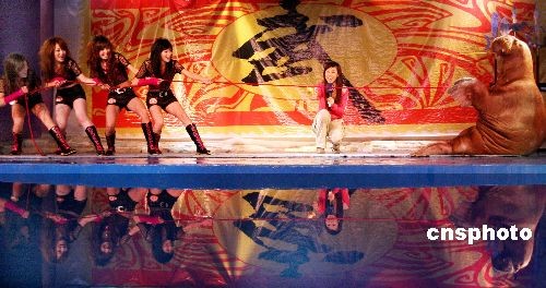 12月25日,圣诞节,一场在哈尔滨举行的“功夫海象”趣味擂台赛拉开帷幕。从300余名报名选手中角逐出6名小朋友和5位美女参加了第一期赛事。中新社发 姚庭山 摄