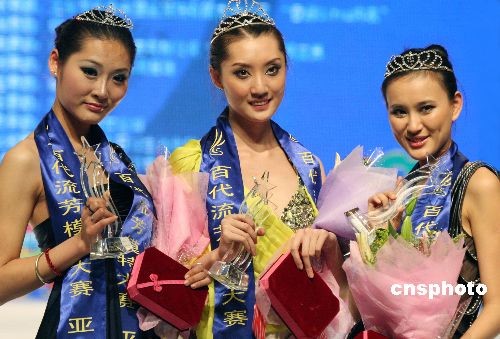 12月25日晚,2008百代流芳模特大赛中国总决赛”在北京海淀剧院上演。选自中国各分赛区的18位佳丽先后进行了内衣、休闲装、中国历代服饰和晚装等多个比赛环节的角逐,最终由11号选手高洁摘得桂冠,15号选手刑璐和07号选手李卓分别获得亚军和季军。中新社发 钱兴强 摄