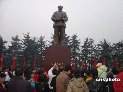 12月26日清晨,在韶山毛泽东广场,从中国各地赶来的民众怀着对毛主席的思念和对未来的祝福,齐唱《东方红》纪念毛泽东诞辰115周年。中新社发 肖前辉 摄