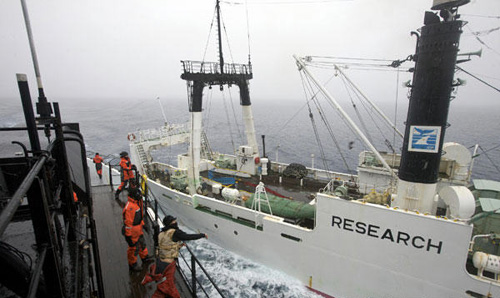 美国环保团体抗议者向日本捕鲸船投掷“恶臭瓶”