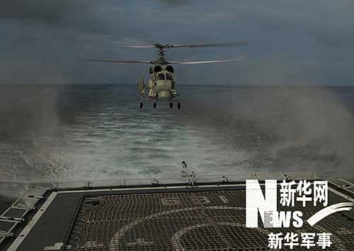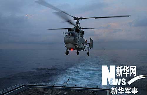 图:护航编队首次组织直升机夜间着舰训练(3)