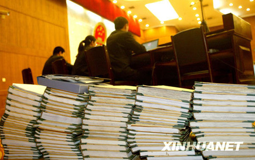 12月29日在石家庄市中级人民法院三鹿问题奶粉系列刑事案件庭审现场拍摄的公诉机关的案卷。新华社发 丁立新 摄