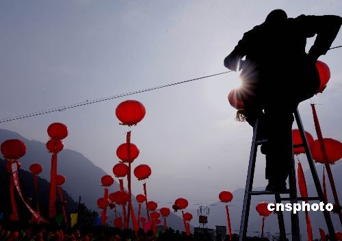 图:大红灯笼高高挂 地震灾民迎新年(2)