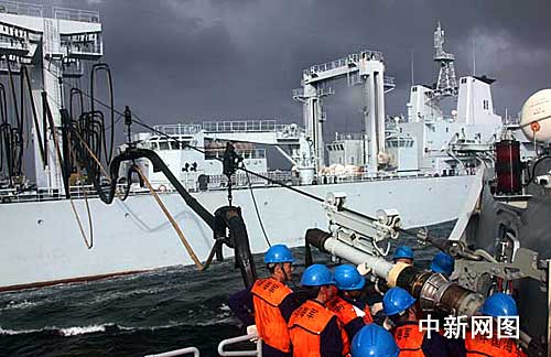 中新网“海口”舰马六甲海峡十二月三十日电 (记者 孙自法)中国海军赴亚丁湾、索马里海域护航舰艇编队,三十日下午在马六甲海峡顺利完成首次海上综合补给。