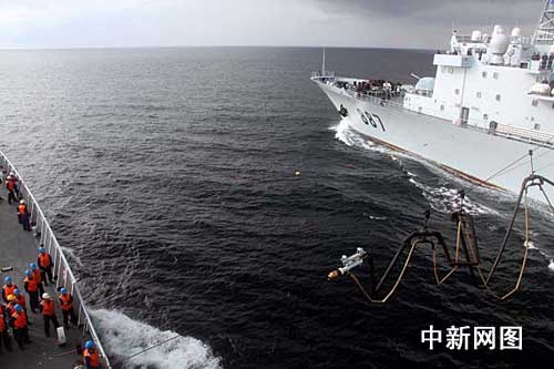 图:中国海军护航编队完成首次海上综合补给(2)