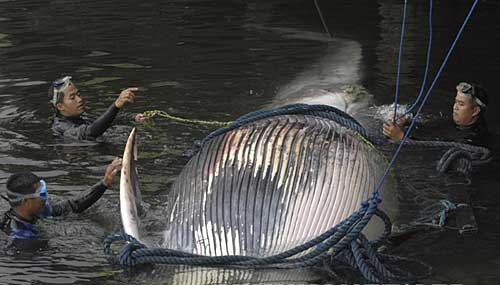 图:菲律宾海岸警卫队捞起鲸鱼尸体(3)