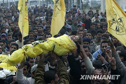 12月30日,在加沙地带北部城镇拜特哈嫩,巴勒斯坦民众为在以军空袭中丧生的小姐妹拉玛和哈娅举行葬礼。小姐妹的年龄仅为4岁和11岁。