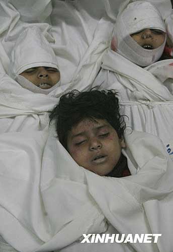图:巴勒斯坦被炸五同胞姐妹的葬礼(4)