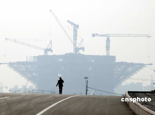 1月4日,2010年上海世博会中国馆日前实现主体结构封顶。作为上海世博会五大永久性建筑之一,中国馆结构封顶标志着世博会园区建设正在顺利推进。中新社发 井韦 摄