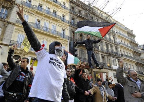 在法国马赛,民众举行集会抗议以军袭击加沙地区。