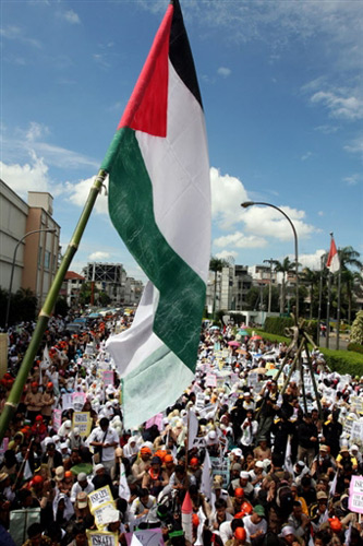 1月3日,印尼民众举行游行活动抗议以色列军队袭击加沙地带。