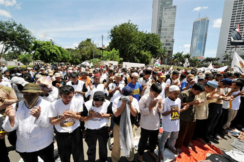 印尼民众为加沙地带死难者祈祷。