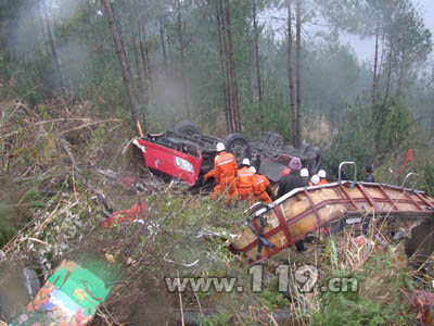 图:客车翻下山坡 消防队7小时生死营救(3)