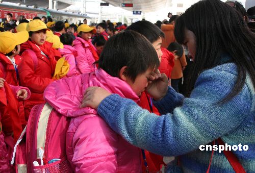 图:汶川地震灾区儿童泪别云南返家乡(2)——中新网