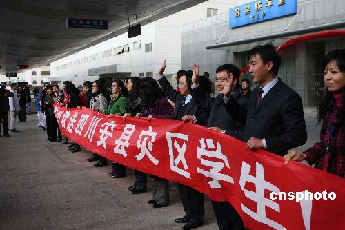 一月六日,五百名四川地震灾区赴滇儿童乘专列返回四川安县,结束了在昆明近七个月的学习和生活。看着车窗外朝夕相处的老师,学生们热泪盈眶。“五·一二”地震发生后,云南有关部门把四川安县失去生活及学习条件的小学生接到昆明暂时安顿,并安排专门的老师进行心理辅助和教学指导。