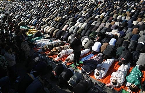 图:巴勒斯坦悼念联合国学校被炸死的民众(2)——中新网