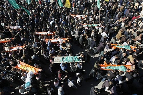 图:巴勒斯坦悼念联合国学校被炸死的民众(3)——中新网