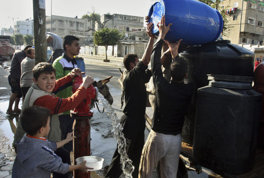 以色列军方1月7日宣布,将从当天开始每天下午1点到4点停火3小时,让加沙地带居民置备必需物品。图为加沙居民在停火期间抓紧补充用水。 [1] [2] [3] [下一页]