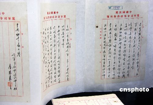 图为周恩来担任国民党党军司令部政治部主任时,于一九二五年七月致中央秘书处的函。中新社发 陈立宇 摄