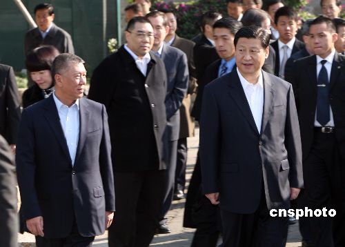 中国国家副主席习近平一行参观古迹大炮台,澳门特别行政区行政长官何厚铧、澳门社会文化司司长崔世安等陪同。中新社发 武仲林 摄