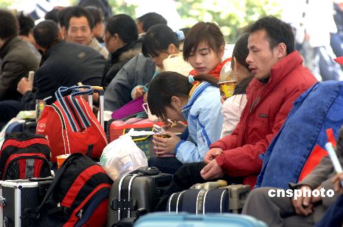 福州火车站内等车的旅客闭目养神。中新社发 王东明 摄