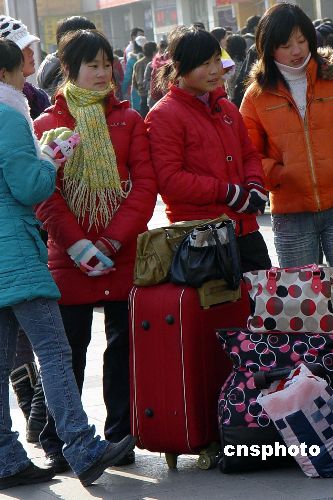 几位“打工妹”结伴在郑州火车站准备一起返乡过年,但“一票难求”愁坏了她们,显得很沮丧。