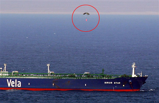 美国海军的监测部门指出,沙特超级油轮“天狼星号”在被挟持近两个月后,9日有一架小飞机突然飞越船只上空,并丢下带有降落伞的“包裹”,而这个包裹应该就是用来赎人的300万美元。根据各方信息,索马里海盗在确认接收赎款后,已经释放25名船员,让油轮驶离索中部的哈拉赫里港。