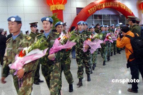 图:中国首批赴达尔富尔维和部队平安回国(2)——中新网
