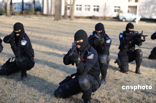 维和防暴队员进行小队战术训练。中新社发 由永怀 摄