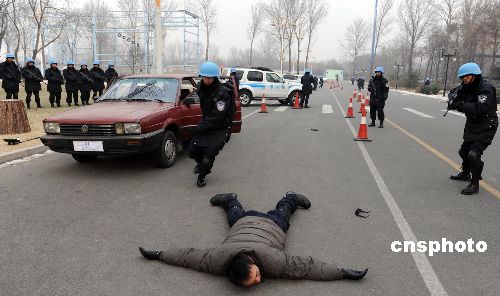 维和防暴队员进行定点查车训练。中新社发 由永怀 摄