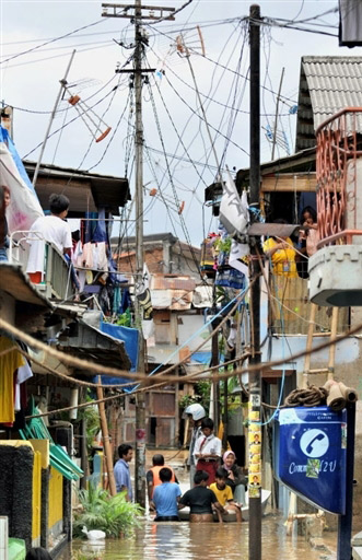 图:印尼遭遇暴雨袭击 洪水淹没街道(3)——中新网