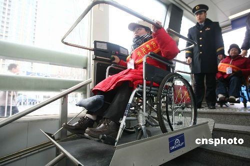1月16日是北京市第七个无障碍推动日。北京市残联、老龄办、妇联和东城区残联联合组织残疾人志愿者在东直门交通枢纽现场,体验无障碍出租车及机场快轨无障碍设施带来的方便与快捷。