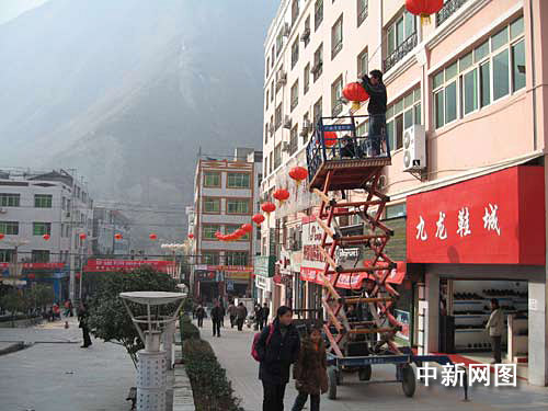 图:甘肃文县地震灾区挂起红灯笼喜迎新春(2)——中新网