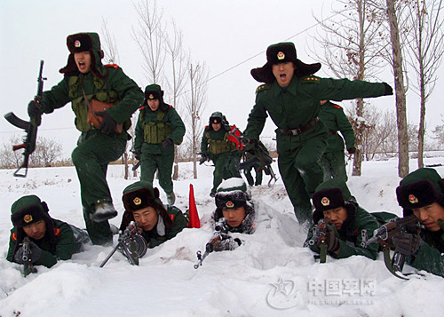 图:武警新疆兵团官兵顶风冒雪练硬功(2)——中新网