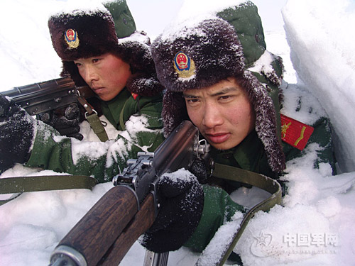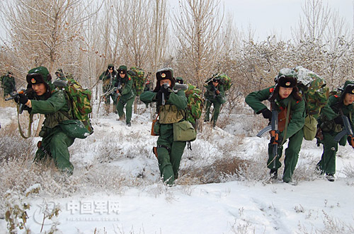 图:武警新疆兵团官兵顶风冒雪练硬功(3)——中新网
