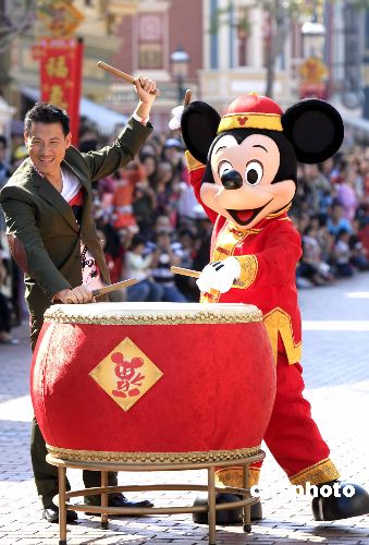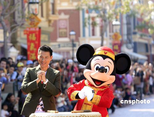 一月十九日,张学友作为香港迪士尼乐园的名誉大使,亮相“福到满城贺金牛”活动,向来宾拜早年。中新社发 张勤 摄
