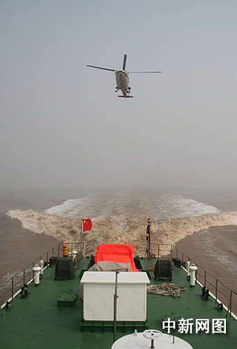 浙江海事主力艇海巡113艇与直升机在宁波核心港区海空协作,进行海上巡视。 黄正胜 摄