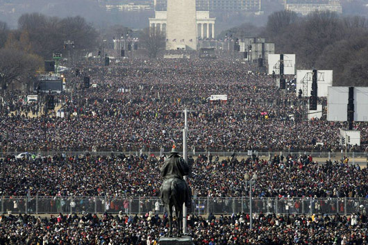 1月20日,在华盛顿,大批观众观看奥巴马就职典礼。