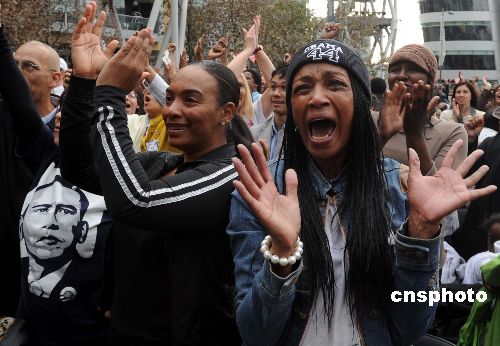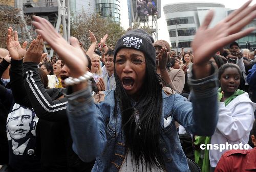 图:奥巴马就职 非裔妇女欣喜若狂——中新网