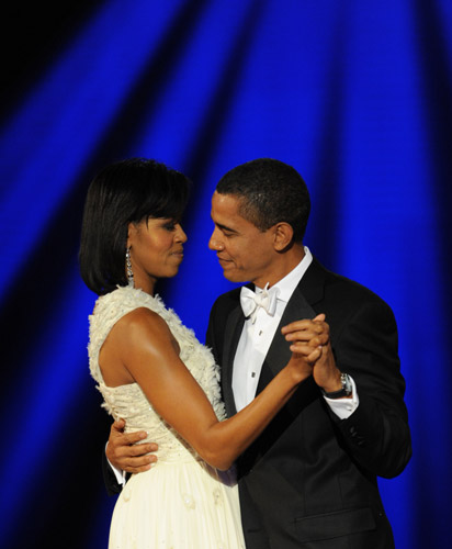 当地时间1月20日,奥巴马在美国首都华盛顿的国会大厦前宣誓就职,成为美国第四十四任总统。当日奥巴马夫妇在华盛顿特区举办的一场舞会上露面,两人还在舞会上深情款款的共舞一曲。