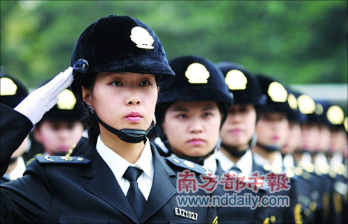 骑士头盔、靴子、紧身衣,22名女队员身着新制服集结宣誓,开电瓶车上路巡街,沿途引起市民惊艳注目。昨日(2009年1月20日)上午,佛山首支城管执法女子特勤中队挂牌上路,佛山欲借此提升打造城管品牌形象。