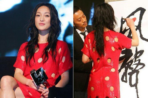 2009年1月15日,北京,电影《风声》的开机发布会当天举行。周迅身着红色“漏洞”装亮相,演绎“透明人”明艳抢镜。