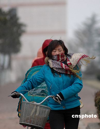 2009年1月22日,山东省日照市迎来一股强冷空气,新市区阵风8级,平均风力5级,气温骤降。中新社发 陈为峰 摄