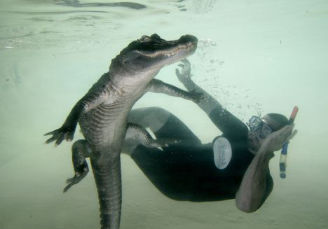 图:美国男子无任何保护措施“与鳄共舞”(2)