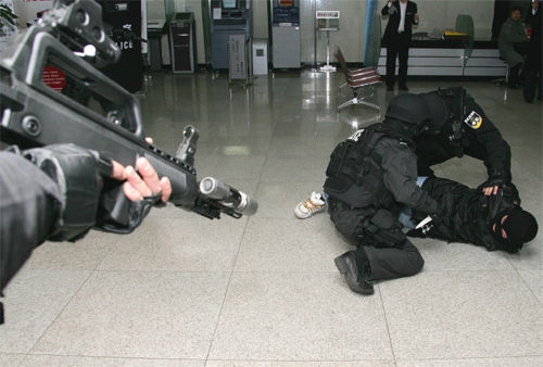 图:北京警方开展银行系统防抢劫演练(2)——中新网