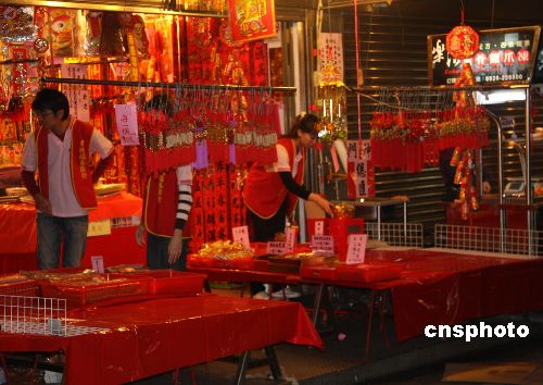 图:忙碌的台北景美夜市春联行——中新网