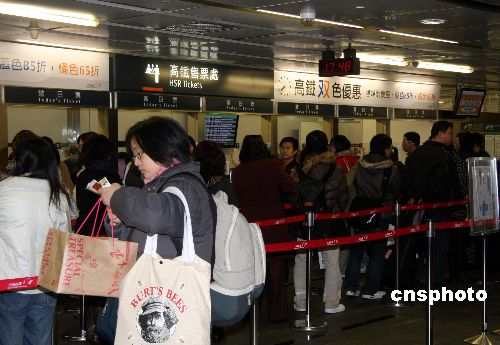 图:台湾高铁购票点出现排队购票人龙——中新网