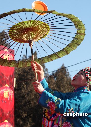 地坛春节庙会杂耍表演吸引游客。中新社发 钱兴强 摄